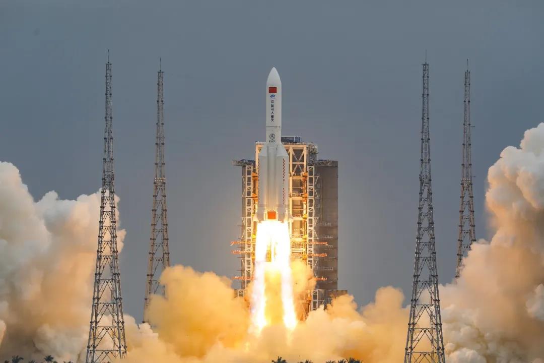 2021年4月29日11时23分长征五号B运载火箭搭载中国空间站“天和”核心舱在海南文昌航天发射场顺利发射升空!