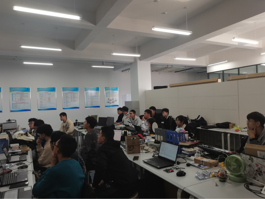 2021年10月16日,集成电路创新实验室成功进行了2021级新生第三次集中培训讲解,全体2021级新生与实验室负责人参与了这次培训,本次培训由郑忠浩讲解,这次培训的是创建工程和点亮LED灯,郑忠浩运用PPT耐心讲解,一步一步指导他们创建工程,讲解每一步的原因;在点亮LED灯实验中,负责人郑忠浩先讲解了原理图,通过LED灯与单片机的连接讲解了逻辑原理,让新生知道其中的原理。课堂气氛良好,21级新生积极踊跃地参与其中,学习热情高涨。