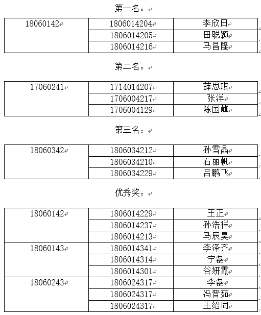 经过一轮又一轮角鹿之争,各组选手获得的成绩如下:
