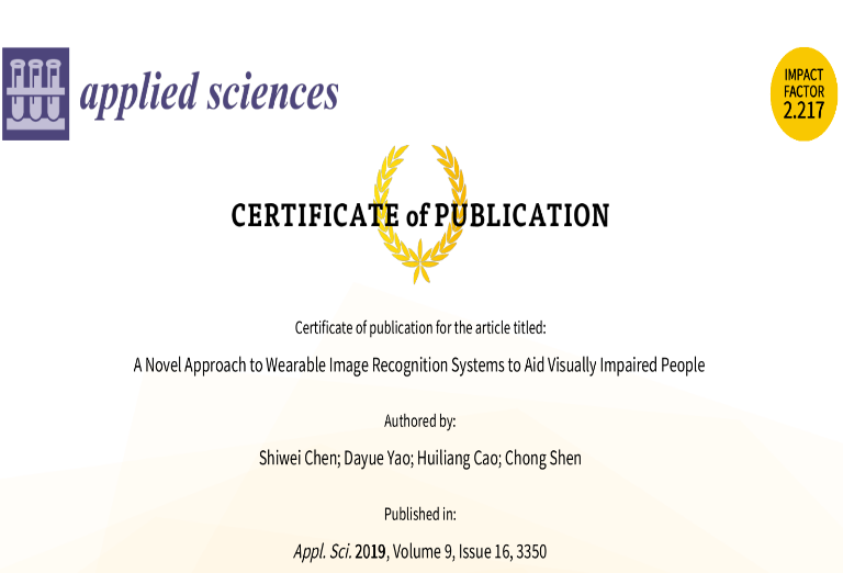 1. 以第一作者发表SCI论文《A Novel Approach to Wearable Image Recognition Systems to Aid Visually Impaired People》
