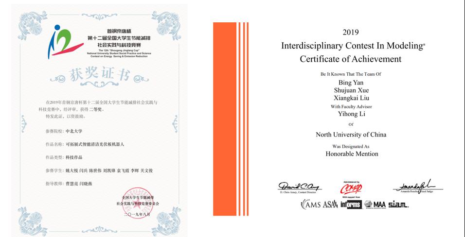 竞赛方面。我在大一时便加入了学院的创新精英研究院进行学习。在此期间,与同学参加了多项竞赛。这两年的坚持,让我获得了全国大学生节能减排社会实践与科技竞赛全国二等奖、美国大学生数学建模大赛二等奖等国家级奖项5项,中国大学生计算机设计大赛山西省一等奖、ICAN国际大学生创新创业大赛山西省一等奖等省级奖项12项。“路漫漫其修远兮,吾将上下而求索”,创新之路,我将探索不止。