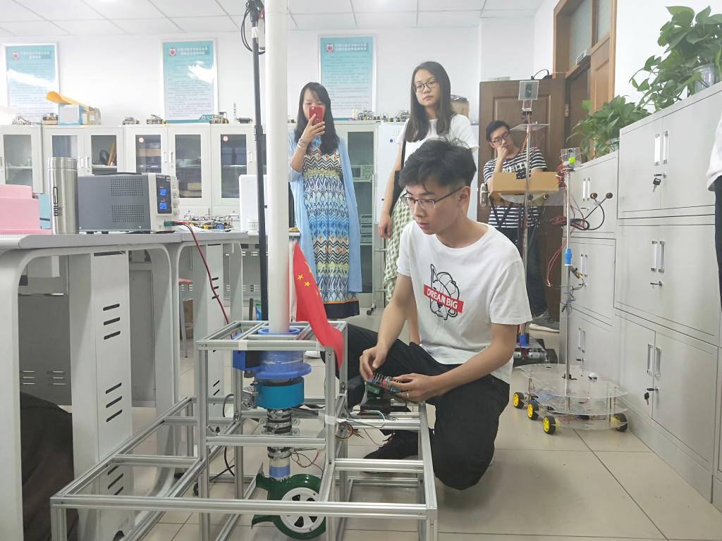 之后,刘迪同学带领太原工业学院老师分别参观了研究院下设的创业孵化基地以及六个创新实验室:仪器测量创新实验室、机器人创新实验室、数字信号创新实验室、物联网创新实验室、嵌入式创新实验室、智能车创新实验室。对各个实验室的特色以及同学们的自主创新作品有所了解之后,太原工业学院老师对研究院培养本科同学的动手能力的方法提出了称赞。