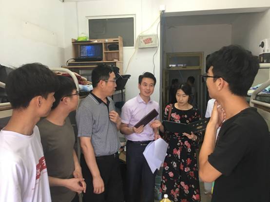 期间,院领导和老师们先后走访了文韬三号公寓男生宿舍区、女生宿舍区近70个宿舍,亲切与毕业生交谈,再次简述了学院关于毕业生离校的相关安排和要求,详细了解了毕业生同学们的离校安排、就业去向、离校感受、意见建议。