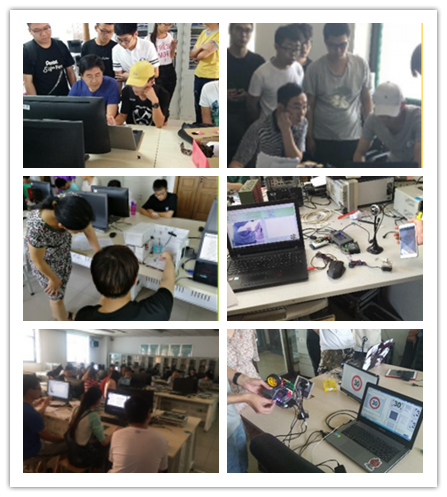 本次实训按照10个专题讲座、3个专题实验、6周动手实践三个环节进行组织。专题讲座与专题实验按照动手实践环节涉及到的难点与重点知识进行讲解与辅导,重点讲解与实验验证有线、无线数据传输,图像数据采集处理,以及整体方案设计需考虑的技术、社会、环境、成本等。6周动手实践中,每天安排两位教师在实训实验室值班辅导,并对辅导过程涉及的问题进行记录汇总与指导团队进行沟通交流。