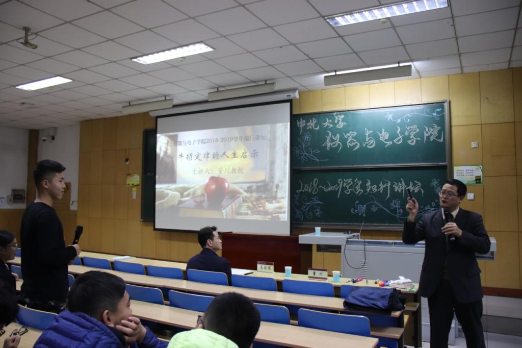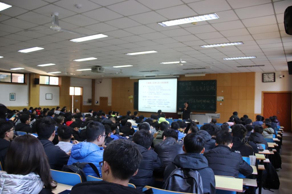 在11209H教室举办2018-2019学年秋季学期知行讲坛。本次讲坛邀请的主讲人为山西大学教授、博士生导师、环境科学研究所所长、职称办主任董川老师。董老师擅长从自然科学的角度探索人文哲理,此次他就以“牛顿定律的人文启示”为主题与学院200余名同学在“哲学观、社会观、人生观、价值观”方面进行了深入交流。