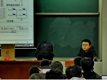培训中,叶蔚学长首先对之前培训的内容做了一个总结,并强调了c语言在单片机学习中的重要性。随后讲解了按键与中断的基础理论,并对今后单片机的学习提出了自己的一些建议。随后的实操中,苏晋强等一批实验室人员对参与学生耐心解疑答惑,同学们在讲解之下认真编写程序。亲手烧录程序,实现各种功能的新鲜感让同学们对51单片机学习充满了兴趣。例会顺利结束。
