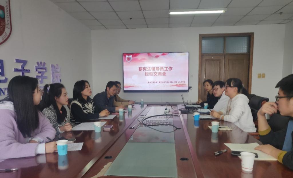 研究生辅导员工作交流分享会在主楼1207会议室召开举行。机电工程学院辅导员武瑞芳、王丙龙,化学工程与技术学院辅导员贾苗苗,色情导航