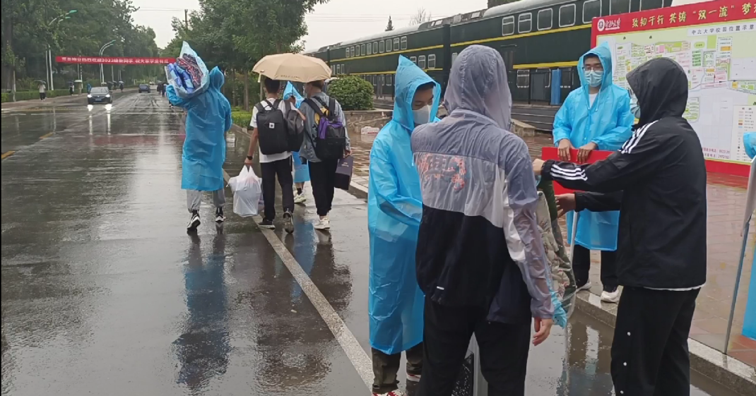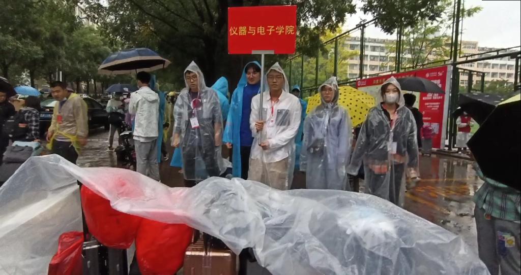 19日还逢降雨,志愿者们身披雨衣一趟趟折返接送,帮助搬运行李,衣服头发都淋湿了,也没有停下脚步,还在路途中给新生讲述入学注意事项与生活趣事,营造出温馨活泼的迎新氛围。尽管家长们无法进校,但校门口驻足时看到志愿者的身影,让他们对孩子的大学生活多了一份信心与期待。