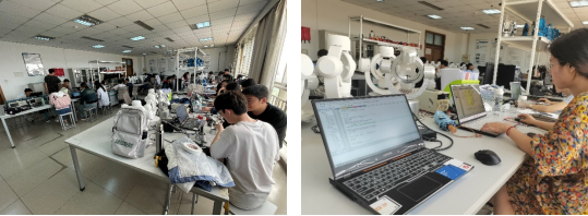 6月14日,同学们在1108实验室,利用串口调试助手,读取控制板和惯组版的数据,分析传回的数据是否正确,并进一步排错和调试。