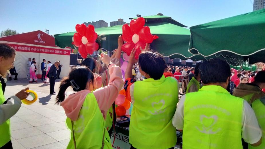 9 月 30 日上午,志愿者们早早到达活动场地,太原万达广场,投入会场布置工作,营造出欢乐温馨的活动氛围。接下来的三天间,志愿者们在现场积极宣传,引起热心人士关注,为孤独症儿童募集捐款,同时通过自己的行动向孤独症儿童传递社会的温暖与关爱。一朵朵气球、一束束鲜花、一份份小礼品不仅为活动增添亮色,也传达了志愿者们对孤独症儿童的关爱和祝福,同时向爱心捐赠人士的表达感谢与祝福。