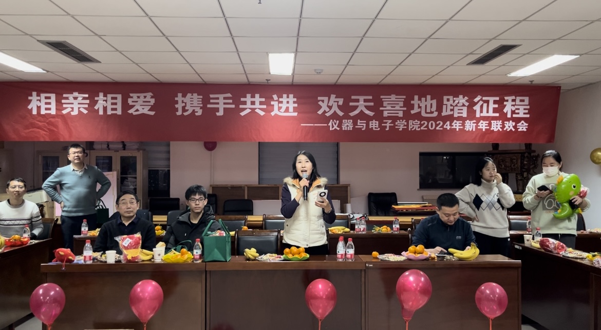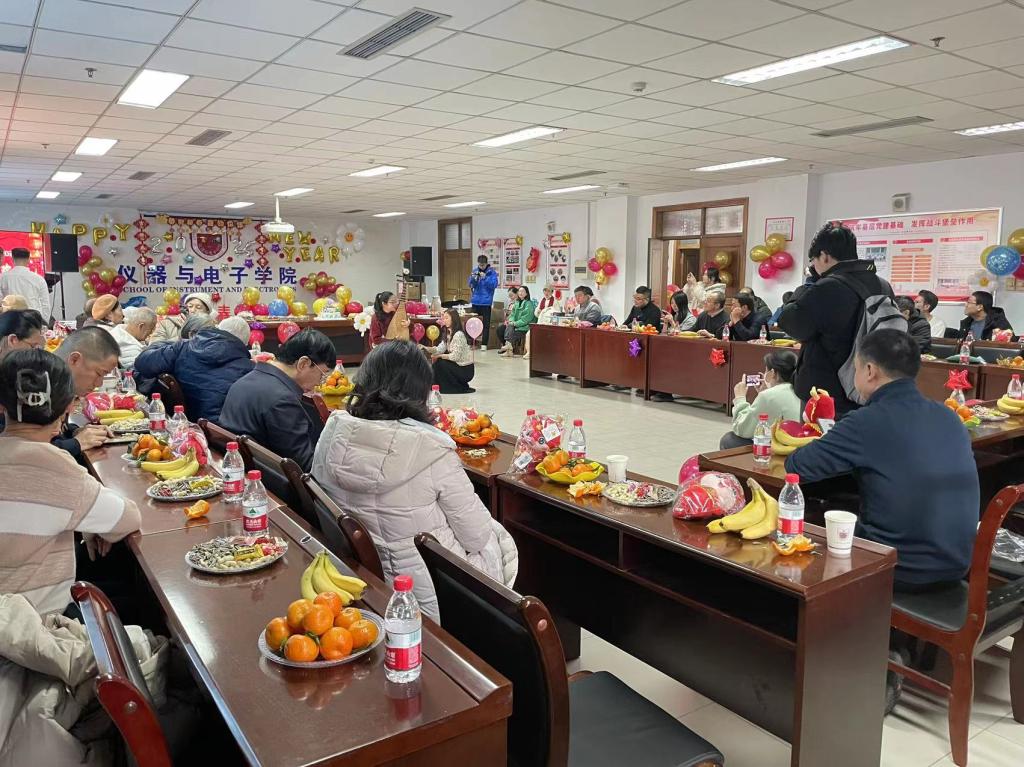 2023年12月28日下午,仪器与电子学院在主楼1115会议室举办“相亲相爱 携手共进 欢天喜地踏征程”2024年新年联欢会。学院全体教职工参与本次联欢。