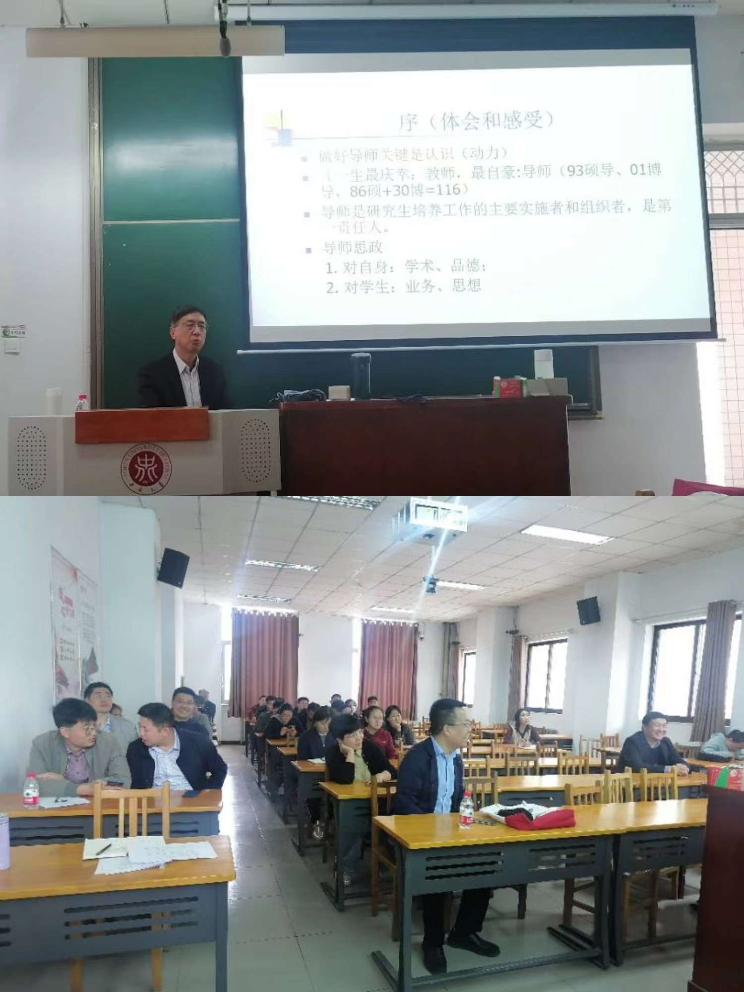 在11301T教室开展了本学期第一场研究生导师培训。本次培训邀请博士生导师胡双启教授做了题为“做一名合格的研究生导师”的讲座。学院研究生导师参加了本次培训。