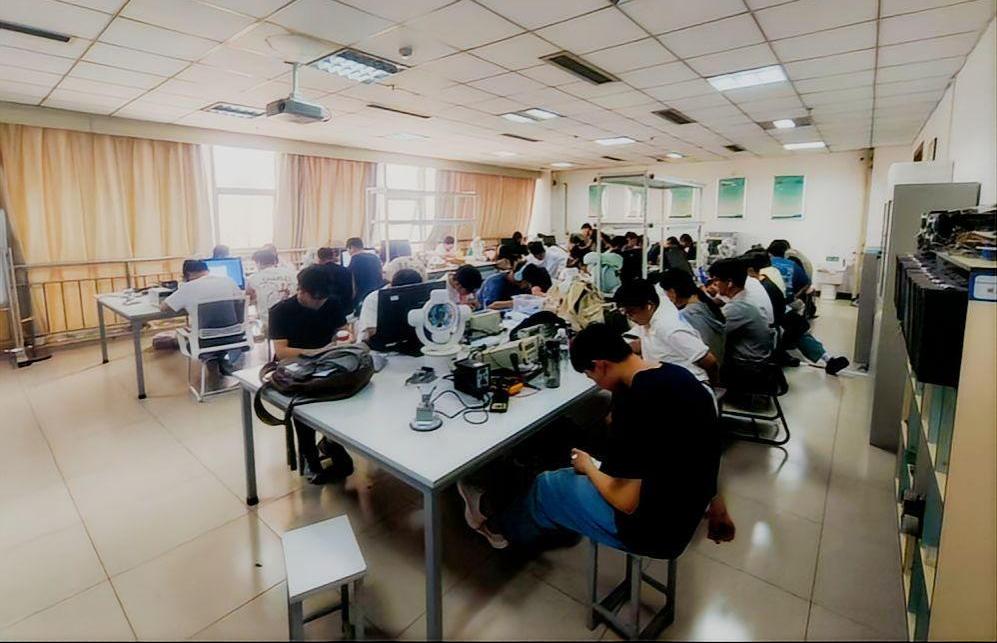 在完成机械结构的同时,各团队同步推进了电子控制系统开发工作。电路焊接作为连接机械系统和控制算法的关键环节,尤其考验学生的耐心与细心。目前,各小组已陆续进入系统联调阶段。通过PID参数在线优化、振动抑制算法实现等环节,同学们正在验证系统的闭环控制性能。
