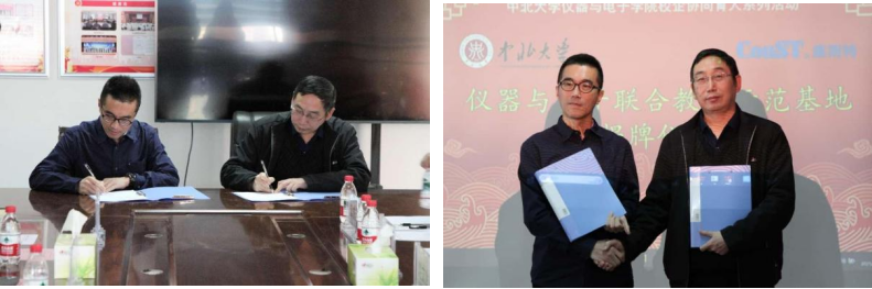 顺利召开校企协同育人系列活动“校企合作签约暨仪器与电子校企联合教学示范基地揭牌仪式”。康斯特集团副总经理董立军、教育事业部总经理付陈修、产业学院院长齐跃霖、高级工程师许超、色情导航