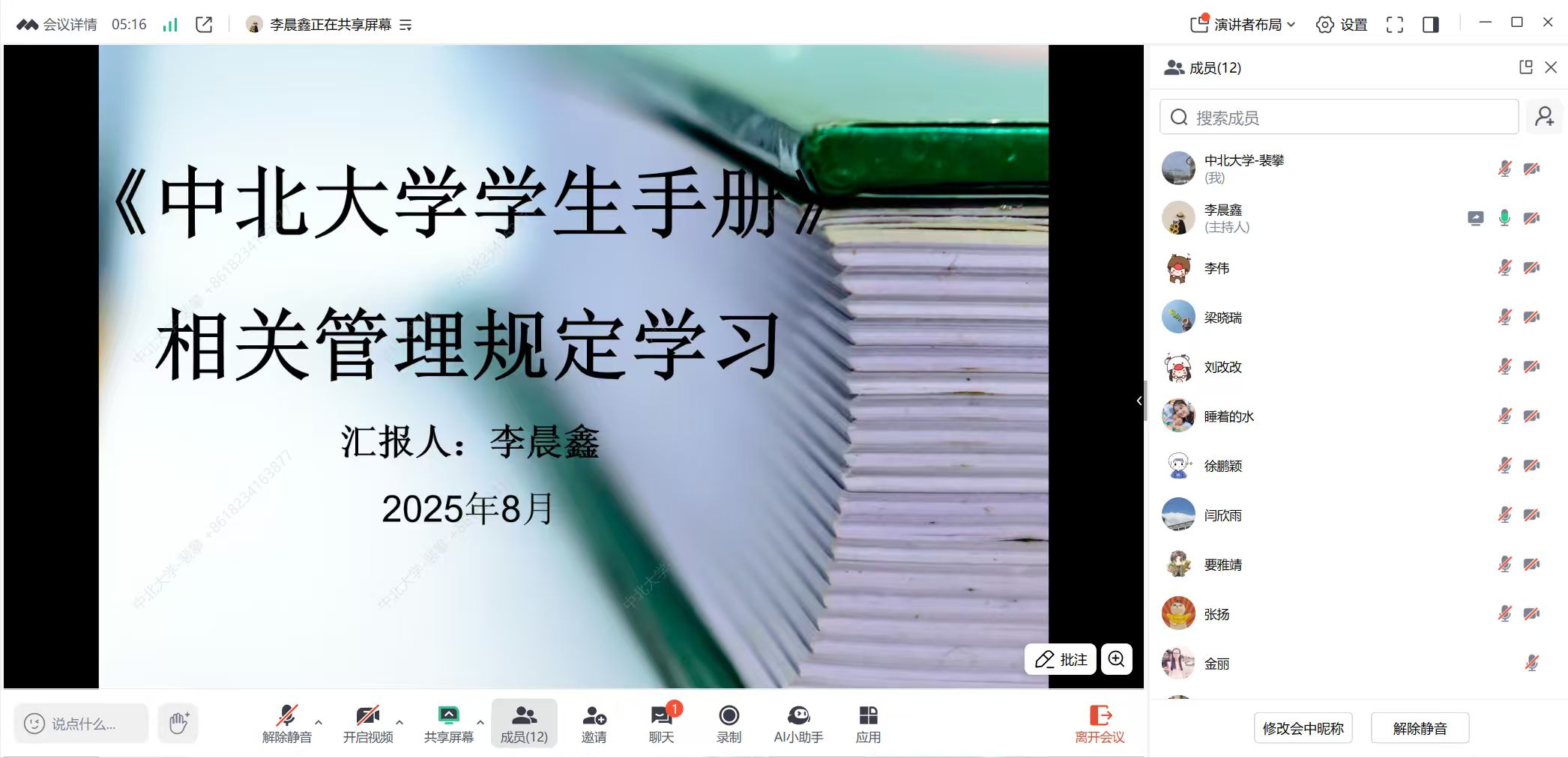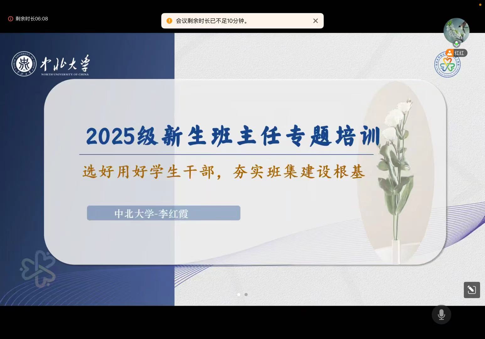 学生手册》的培训中,重点学习了学生请销假、学籍管理、学业预警、纪律处分等学生日常事务管理的相关规定;在资助培训中,重点学习了家庭经济困难学生认定、各类助学金的评定以及常见的误区等相关内容;在评奖评优培训中,重点讲解了各类奖学金的评定准则以及评定流程;在学生干部的选拔与培养中,重点交流了通过科学选拔并注重德才与服务意识,系统性地培养、管理与激励学生干部,使其发挥带头作用,从而筑牢班级建设根基,助力学生成长;在班团建设培训中,重点就团员关系转接、三会两制一课、团日活动、团员教育评议、团员发展、评优、社会实践、新生活动等工作与新生班主任沟通交流;在心理健康教育培训中,与班主任交流了心理危机干预的识别与预防的内容。