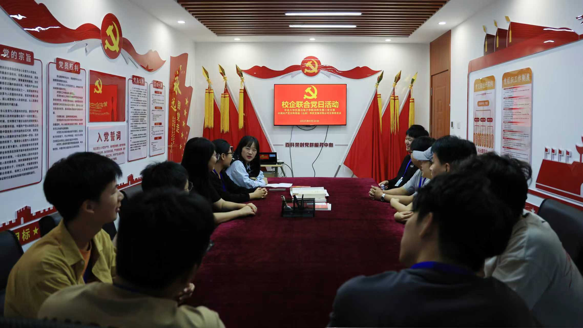 座谈交流结束后,本科生第三党支部书记姚瑶组织支部党员开展以“校企交流促发展,党建引领助成长”为主题的党日活动。学习环节中,姚瑶老师带领党员们重温了“党建引领校企合作”的相关政策精神,强调党员学生要在实习中发挥先锋模范作用,以严谨的态度对待工作,同时主动收集企业对专业教学的建议,搭建起学校与企业间的“信息桥梁”。
