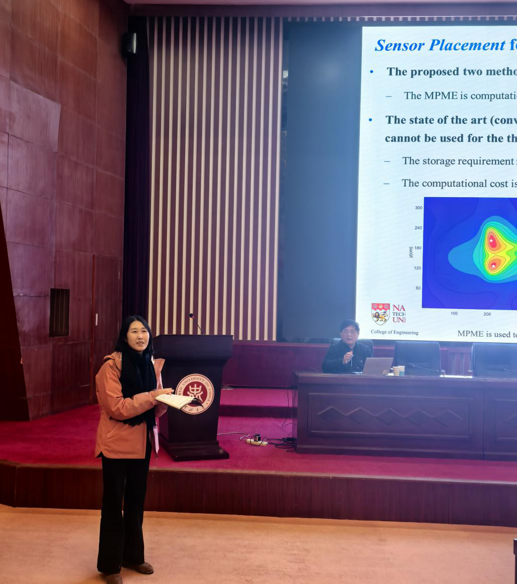 党委书记郝晓剑教授主持。她表示:苏院士围绕如何高效利用稀疏传感器观测数据与计算流体动力学(CFD)仿真融合,快速重建复杂物理场展开,内容涵盖物理场的主成分分析(PCA)、回归建模及基于特征值的贪婪算法优化传感器布置,并结合实际案例与仿真数据,展示该技术在智能系统与节能工程中的应用潜力。