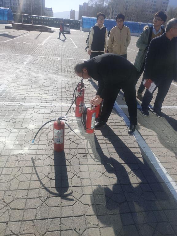 最后,在行知广场进行灭火器等消防器材的正确使用演练,参会人员积极配合,取得了良好的效果。
