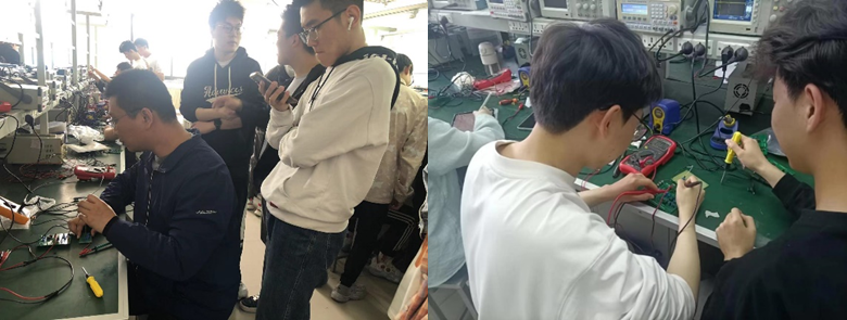 郝晓剑老师集中给大家介绍了实物制作模块注意事项、操作规范和实物制作及标教方法。同学们首先利用课程线上资源学习了电路测试流程、考察标准以及动静态标定的详细过程,然后郝晓剑老师、高晋阳老师和葛双超老师在实训过程中对大家进行了线下指导。
