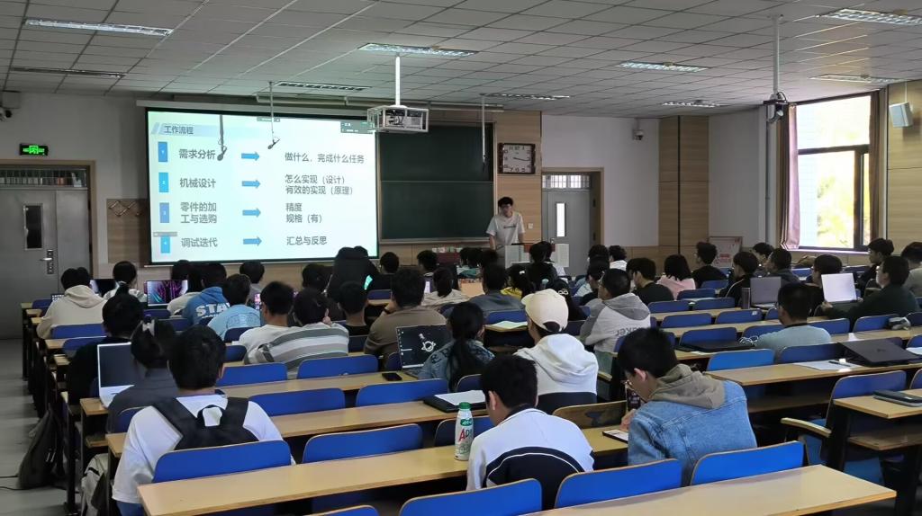 本次培训分为电控组和机械组两个组别进行培训,其中电控组培训主讲人张驰,机械组培训主讲人为郑睿。电控组培训的主要内容包括电控导论和一些基础知识的介绍,同时为大家提供了电控的学习思路;机械培训主要包括了对机械组工作内容的介绍以及对Solidworks的初步讲解。培训时,教室内座无虚席,大家都求知若渴地投入到了培训中去,培训现场充满了浓浓的学习气氛。