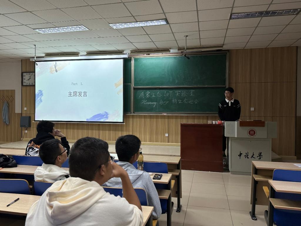 实验室成员阚文龙为本次见面会的主持人首先,实验室的主席郭锦源进行发言向大家介绍实验室的历史、环境,并且将实验室近年所获得的奖项向大家展示,给大家也普及竞赛的相关知识。同时郭锦源也向同学们介绍他自己的学习心得和比赛经历,同学们都听得非常认真。接下来21级代表武云鹏和22级代表刘泽上台发言,两个人不同丰富经历都深深吸引了同学们的注意力。在最后,也邀请到了保研到清华大学的侯帅鹏和保研到中国科学院大学的王佳琪来向同学们介绍他们的保研经历以及他们的学习方法。