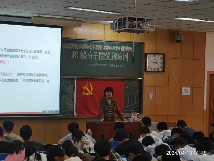 联合半导体与物理学院、体育学院于2024年4月13日至4月14日举办了第37期入党积极分子培训班,以提高入党积极分子对党的认识,增强党性修养。