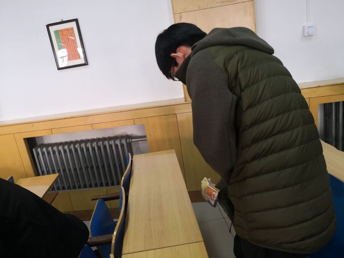 本科生党支部的党员与入党积极分子们利用课余时间,来到了教学楼打扫教室,捡拾垃圾。