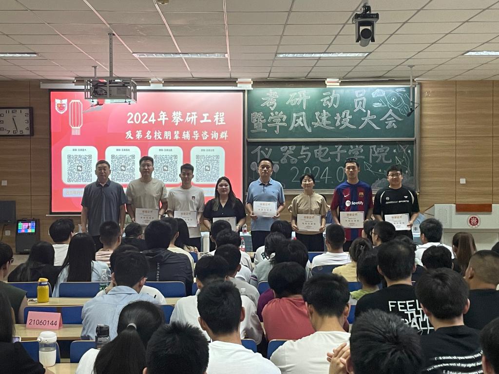 以本科生的考研升学为抓手,全面调动学生考研积极性、明确考研目标、增强考研信心、提升考研竞争力,为学院的学风建设注入新的活力。5月21日下午,学院在09202H教室举办了主题为“领航梦想,我们一直在路上”的考研动员暨学风建设大会。学院领导班子、辅导员和班主任、学科团队的导师代表以及2021级、2022级的学生们参加了本次大会。会议还通过网络直播的形式吸引了广大学生和家长参与。