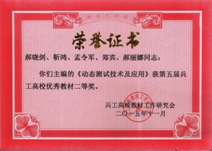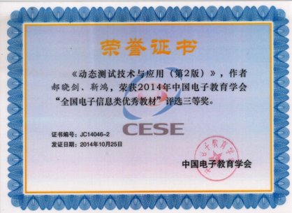 《动态测试技术与应用(第2版)》,主编郝晓剑,获2014年中国电子教育学会“全国电子信息类优秀教材”评选三等奖。 |